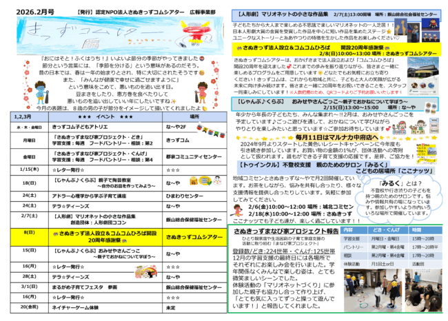 きっずコムレター2026年2月号を発刊いたしました。